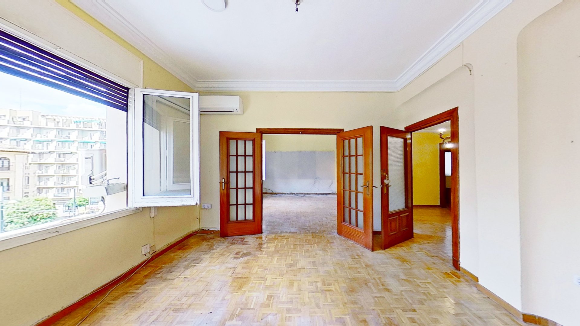 La vivienda se encuentra en una tercera planta, con orientación hacia la avenida y una excelente entrada de luz natural. Forma parte de un edificio con fachada clásica, de esos que conservan el carácter de la arquitectura tradicional y que hoy en día marcan la diferencia por su elegancia y autenticidad. Además, la finca dispone de solo dos vecinos por planta, lo que garantiza un ambiente tranquilo y distinguido.