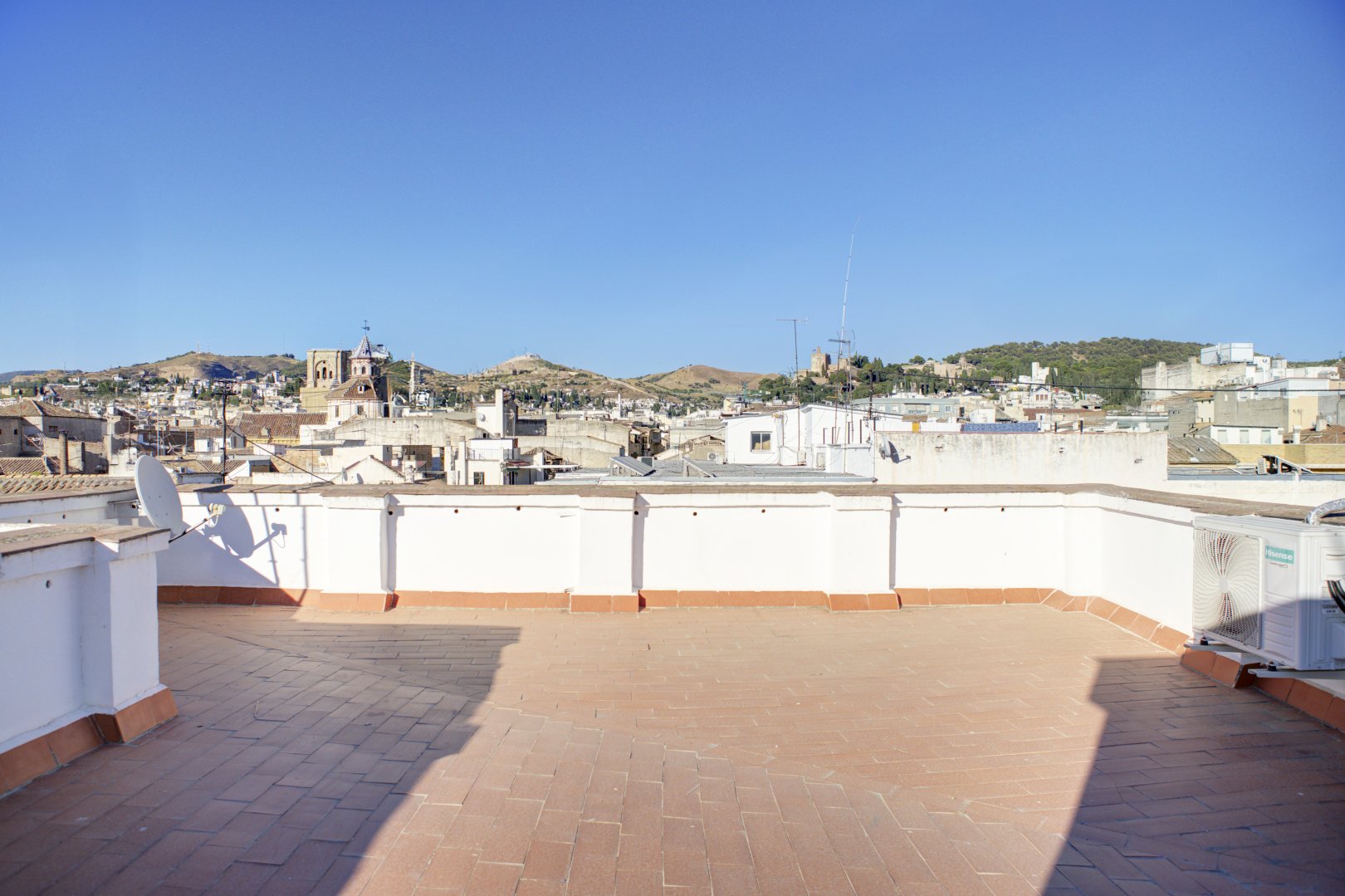El edificio se compone únicamente de cuatro viviendas, con un vecino por planta, lo que garantiza exclusividad y tranquilidad. Además, los propietarios disfrutan de una terraza panorámica comunitaria en la azotea, con vistas de 360º a toda Granada: desde la Alhambra hasta Sierra Nevada.