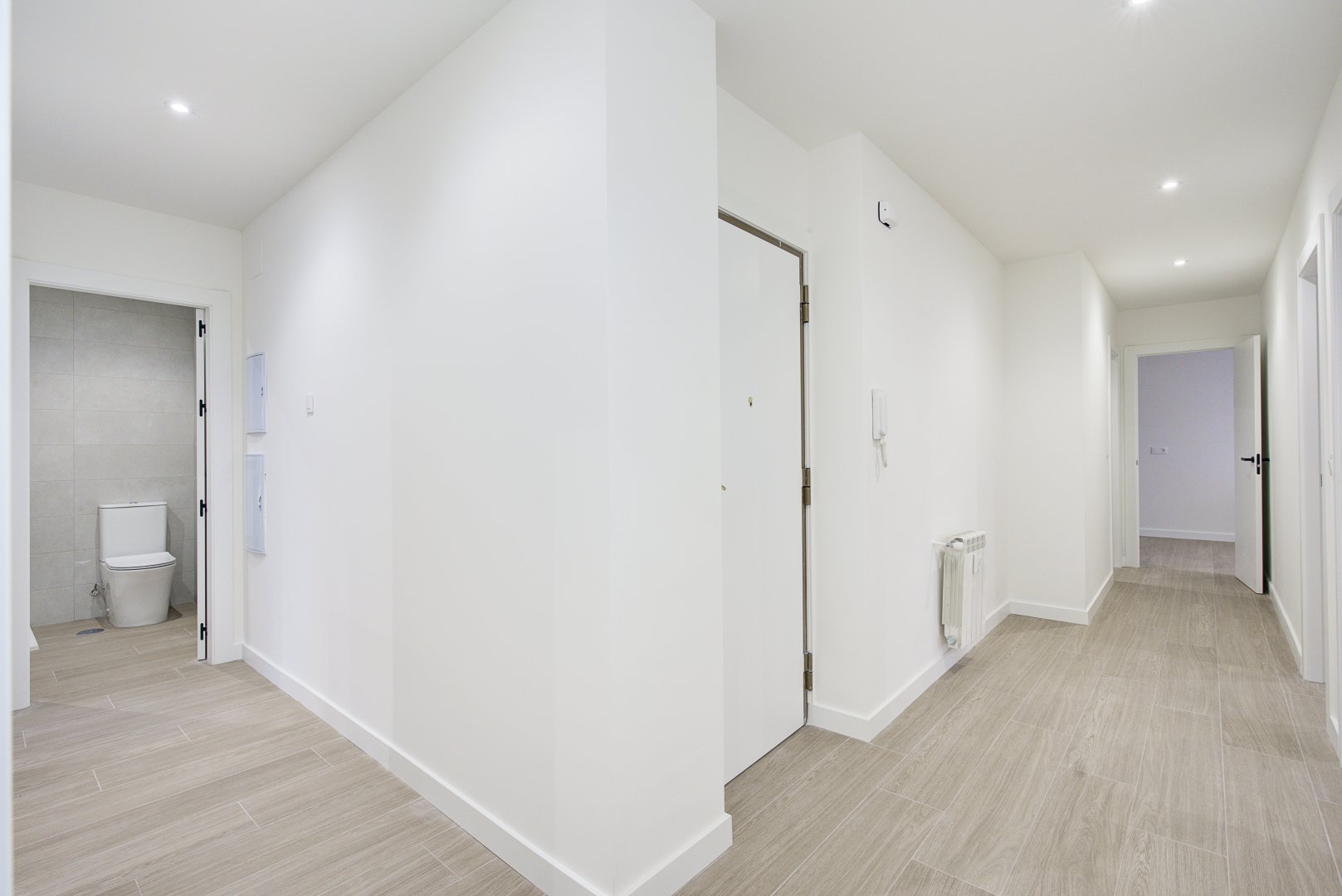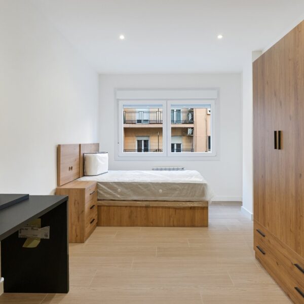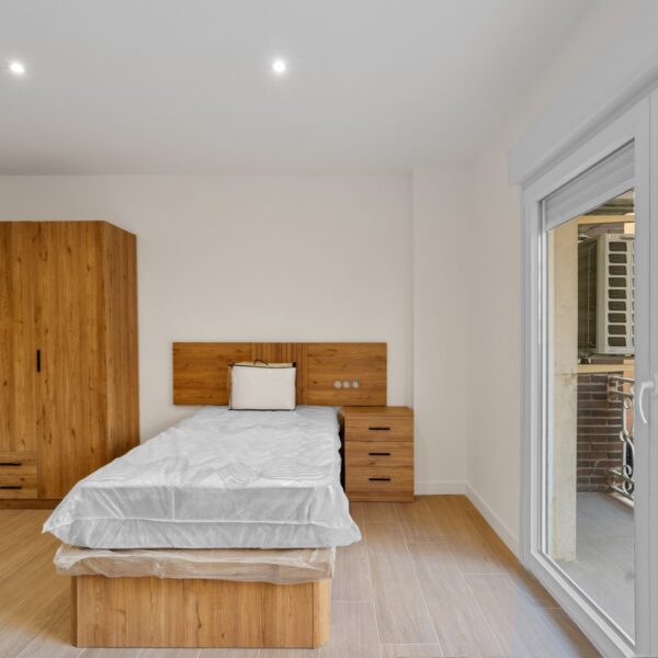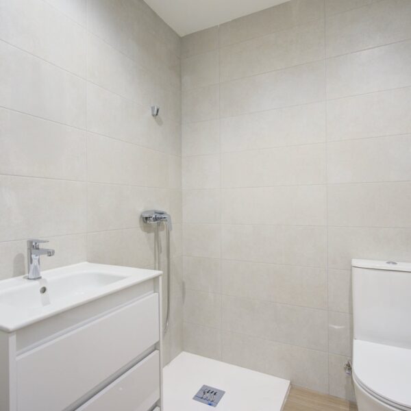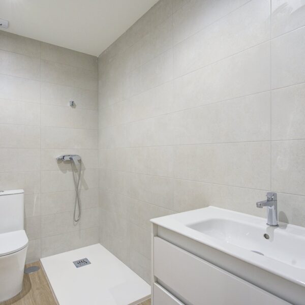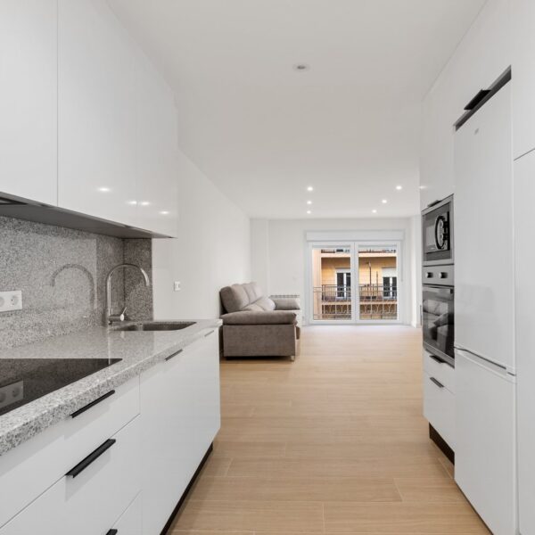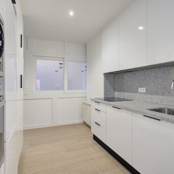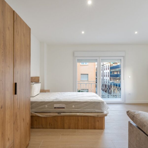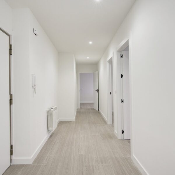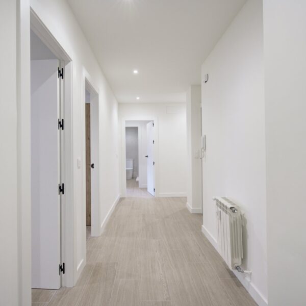 La reforma integral ha sido ejecutada con materiales de alta calidad y un gusto exquisito: suelos porcelánicos imitación madera, ventanas de PVC con excelente aislamiento y puertas lacadas en blanco con manivelas de cierre por clave o llave, un detalle que aporta seguridad y privacidad a cada estancia.