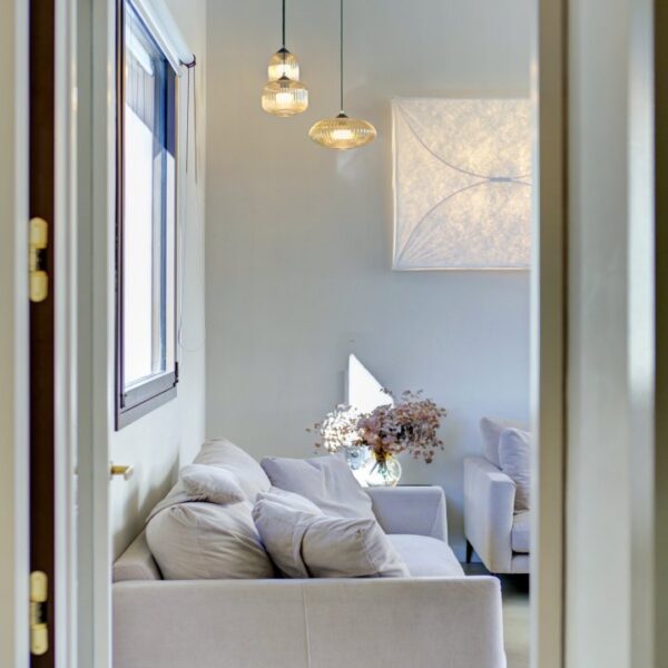 La experiencia comienza en la planta baja, donde un zaguán elegante da paso a un distribuidor con techo acristalado que inunda este nivel de luz natural. Aquí se encuentra una cochera doble de uso propio, con un espacio adicional destinado a trastero y al sistema de aerotermia. Este nivel acoge también una suite con baño privado y un despacho, ambos con acceso directo a un patio con césped artificial. La planta se completa con la zona de lavandería y un patio interior presidido por un limonero, que aporta serenidad y un toque de naturaleza al corazón del hogar.