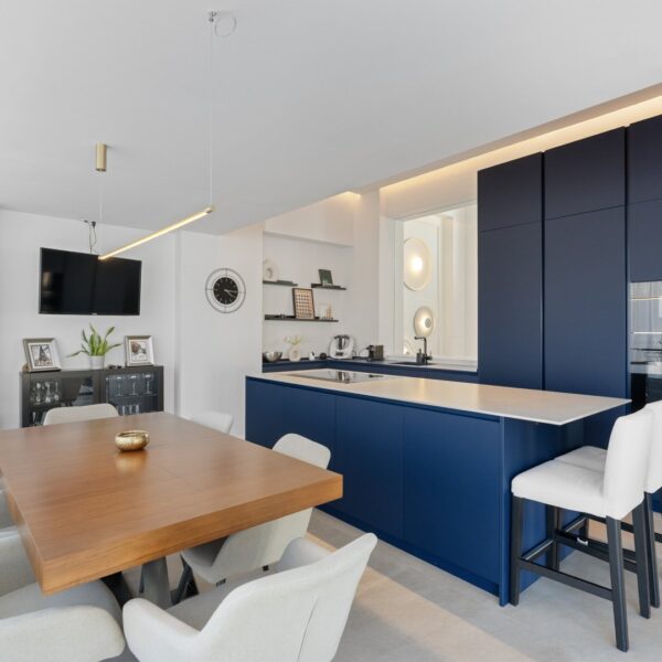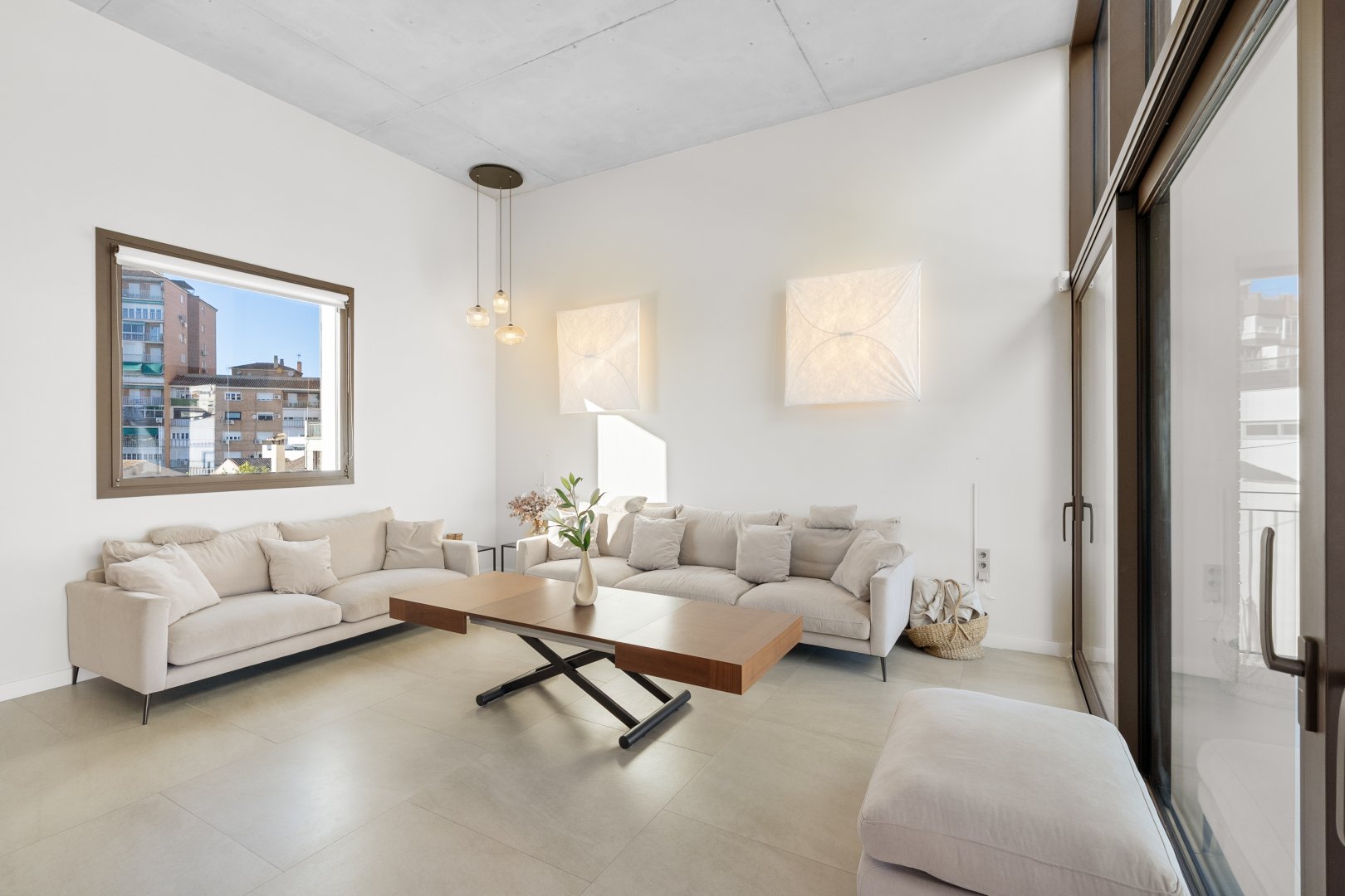 El nivel de equipamiento está en consonancia con la categoría de la vivienda: sistema de aerotermia con suelo radiante y refrigerante, aire acondicionado frío-calor por conductos, placas solares, cerramientos de aluminio de alta gama con hojas osciloparalelas en el salón, cierres de aluminio correderos en todas las ventanas, suelos porcelánicos de gran formato combinados con madera y puertas de diseño, de suelo a techo. La obra fue finalizada en 2021, lo que convierte a esta propiedad en una opción prácticamente nueva dentro de un entorno urbano consolidado.