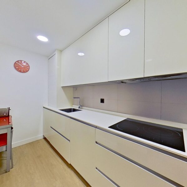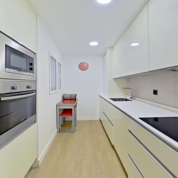 La cocina se entrega totalmente equipada y cuenta además con lavadero independiente. La vivienda dispone de armarios empotrados, aire acondicionado en salón y dormitorio principal y calefacción central incluida en la comunidad, asegurando comodidad durante todo el año.