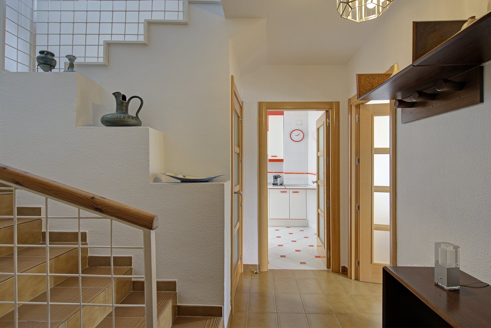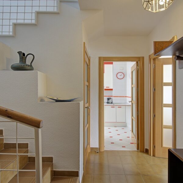 La vivienda se distribuye en varias plantas, con una organización muy funcional y acogedora. En la planta baja, un agradable porche de entrada y una zona de aparcamiento en superficie con techo cerrado nos dan la bienvenida a una casa que transmite personalidad desde el primer instante. Ya en el interior, un hall distribuidor da paso a un amplio salón comedor, una estancia luminosa y especialmente agradable, presidida por unas imponentes vistas que aportan una enorme sensación de amplitud y serenidad, y completada con una chimenea que refuerza el carácter cálido y hogareño de este espacio principal. En esta misma planta encontramos además un aseo y una cocina con amplio lavadero, pensada para aportar funcionalidad al día a día.